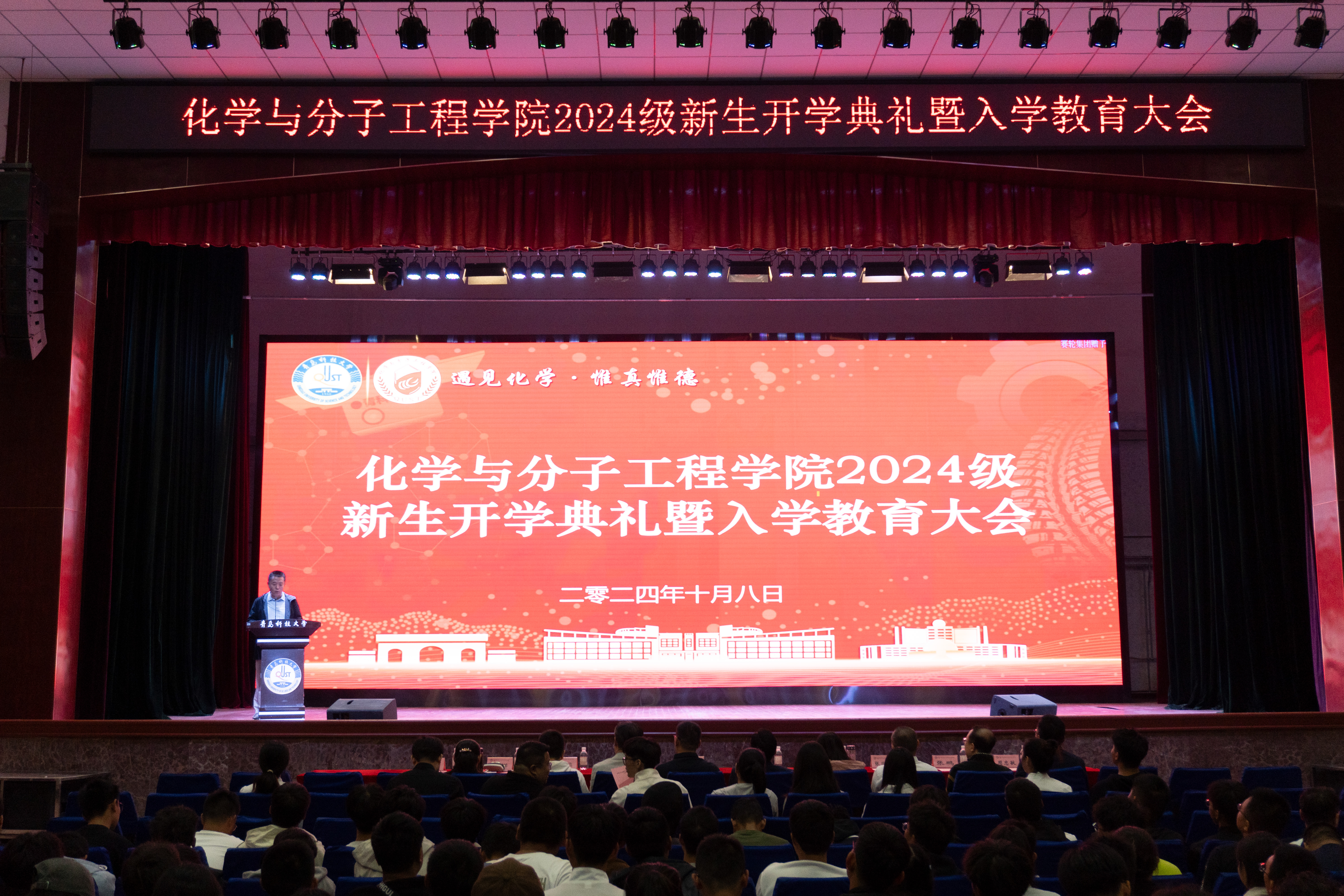 10月8日下午,化学院2024级新生开学典礼暨入学教育大会在四方校区西礼堂举行。学院党委书记肖强教授、学院常务副院长汪恕欣教授、教育部重点实验室主任丁彩凤教授、化学院副院长胡志强教授、学院组织员张同雷老师、青岛市教学名师有机化学教研室于跃芹教授、专业教研室老师、新生班主任、辅导员代表及2024级全体新生参加典礼。