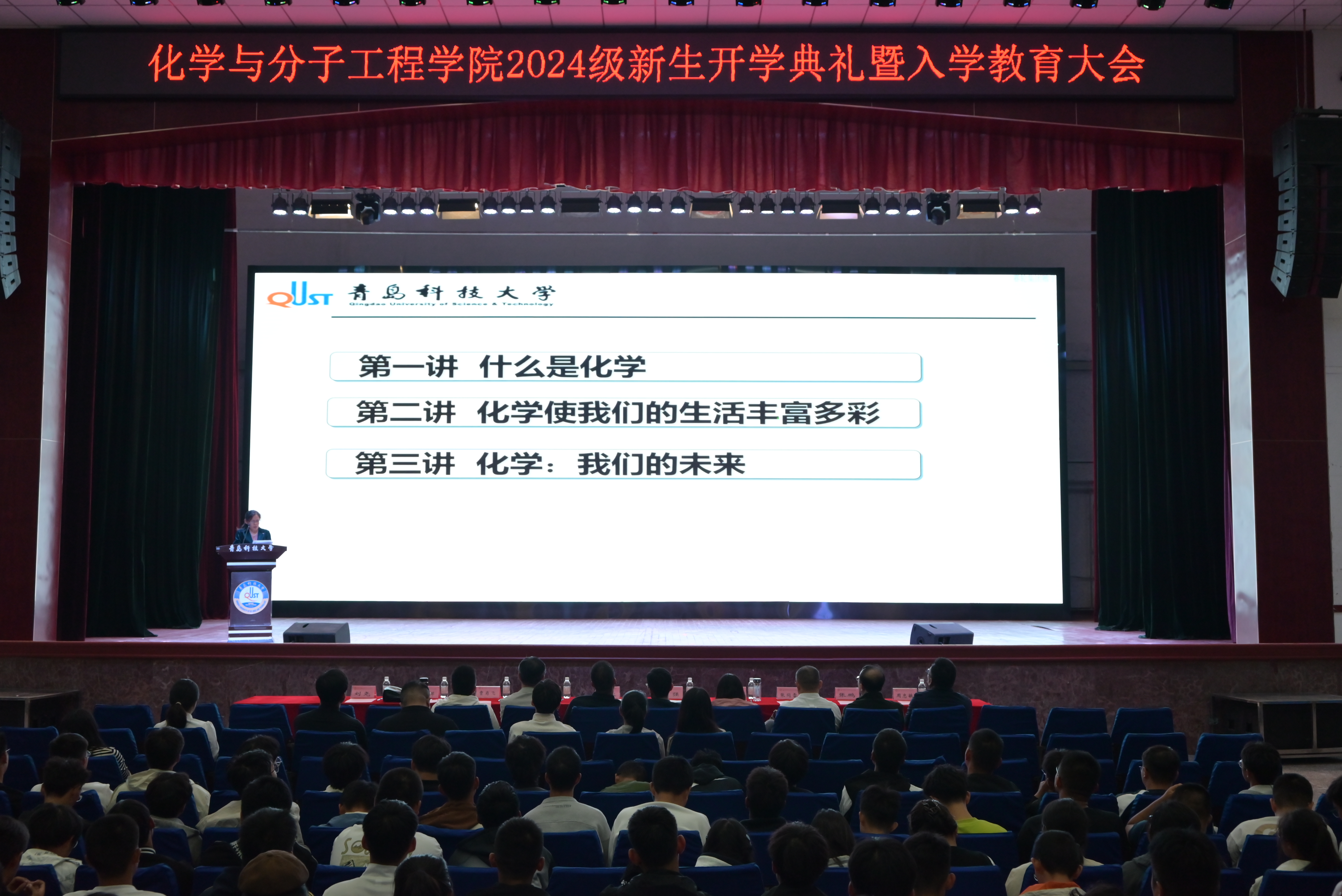 青岛市教学名师于跃芹教授以“化学,让生活更美好”为题,为2024级新生上开学第一课,她从“什么是化学”“化学使我们的生活丰富多彩”“化学我们的未来”三个方面展开叙述,于老师讲述了化学的独特魅力,鼓励同学们保持热情,专注科学,发现和创造更多化学之美,期盼同学们在化学院学有所成,创造精彩,做惟真惟德化院人。