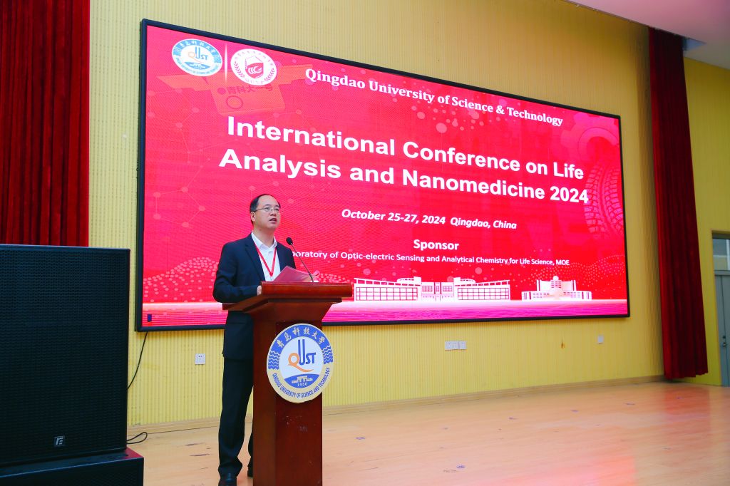 陈克正在致辞中介绍了学校的办学历史、发展现状和办学特色。他指出,进入21世纪以来,生命科学已经成为现代科技领域中最活跃的学科之一,在与材料、化学、计算机等学科的交叉融合发展过程中,进一步加速了生命分析、纳米医学等领域前沿技术的发展,为维护人民生命安全和身体健康提供了有力保障。党的二十届三中全会提出,“必须深入实施科教兴国战略、人才强国战略、创新驱动发展战略,统筹推进教育科技人才体制机制一体改革,健全新型举国体制,提升国家创新体系整体效能”。高校作为科技创新的策源地,是教育、科技、人才的集中交汇点,肩负着更加厚重的责任与使命。他表示,此次学术会议的召开为我们搭建了一个国际学术交流的广阔平台。希望与会国内外专家学者围绕分析化学、纳米技术、影像技术、传感器件与生物医学等前沿领域的创新探索集思广益、畅所欲言,在生命分析与纳米医学研究领域,呈现出一场主题鲜明、精彩纷呈的学术盛宴。
