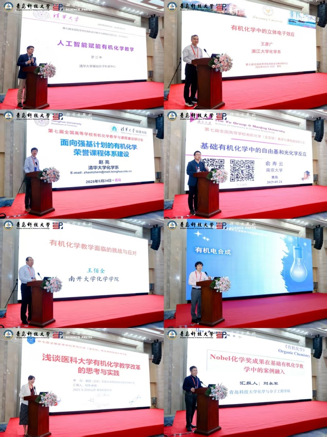 5月23日至25日,由教育部高等学校化学类专业教学指导委员会和教育部高等学校大学化学课程教学指导委员会主办,青岛科技大学国产内射老熟女AAAA∵和科学出版社联合承办的第七届全国高等学校有机化学教学与课程建设研讨会在青岛召开。教育部高等学校化学类专业教学指导委员会秘书长朱亚先、教育部高等学校大学化学课程教学指导委员会副主任委员李艳梅等来自全国70多所高校150余名专家和教师参加了研讨会。学院党委书记肖强主持开幕式。