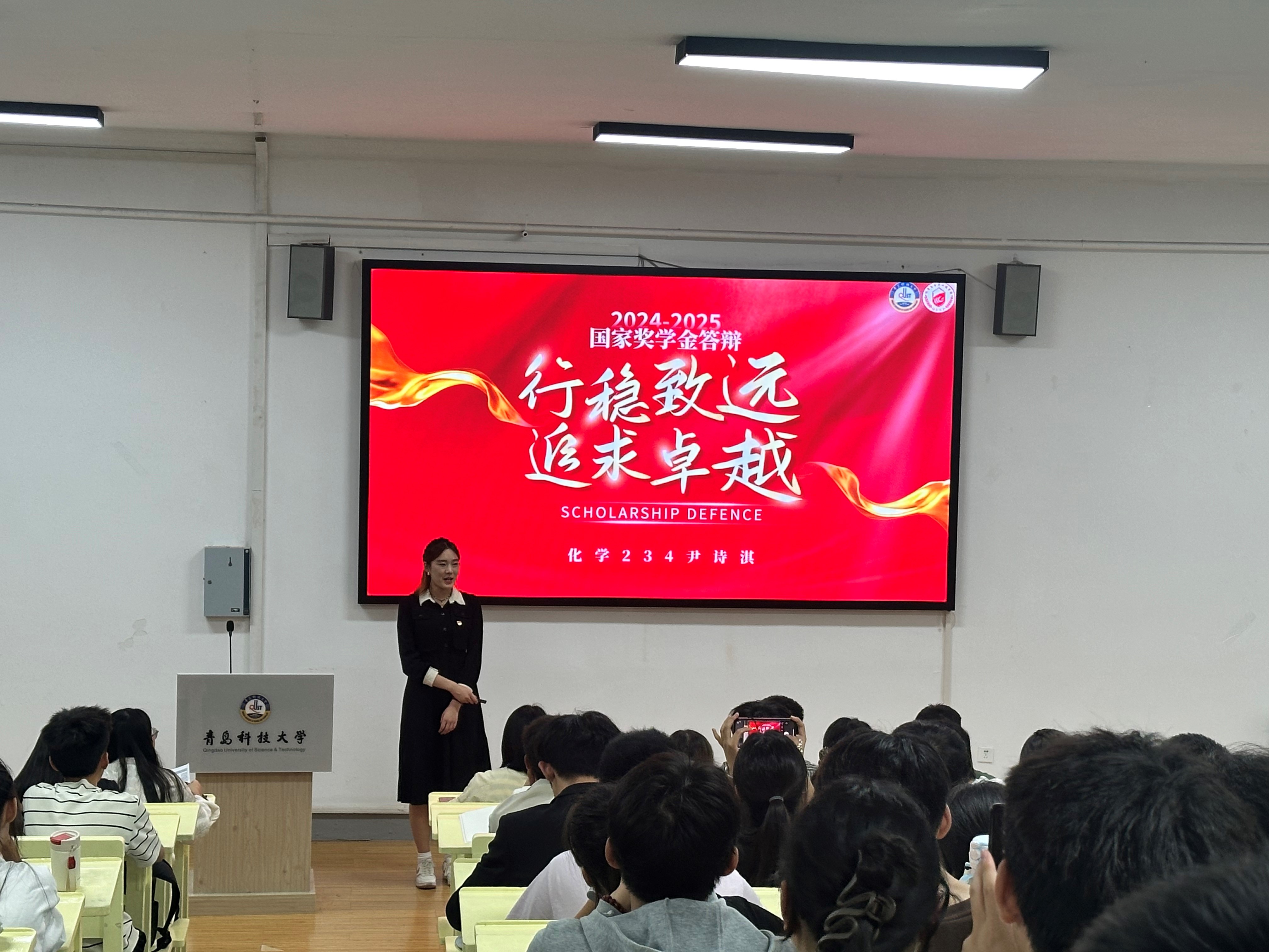 会议伊始,主持人首先就2024-2025学年本科生国家奖学金、省政府奖学金的初审工作概况与评审标准作出说明。在随后的答辩展示环节,22名候选人依次进行个人陈述,分别从专业学习、科研创新、社会实践、学生工作、文体活动及创新创业等方面展现了各自的优异表现与综合素养。他们之中,既有在学术领域深耕不辍的科研能手,也有在社会实践中开拓进取的公益先锋,展现了化院学子全面发展的优秀特质。整场答辩组织有序、亮点频现,候选人各展所长,现场掌声不断,气氛热烈。