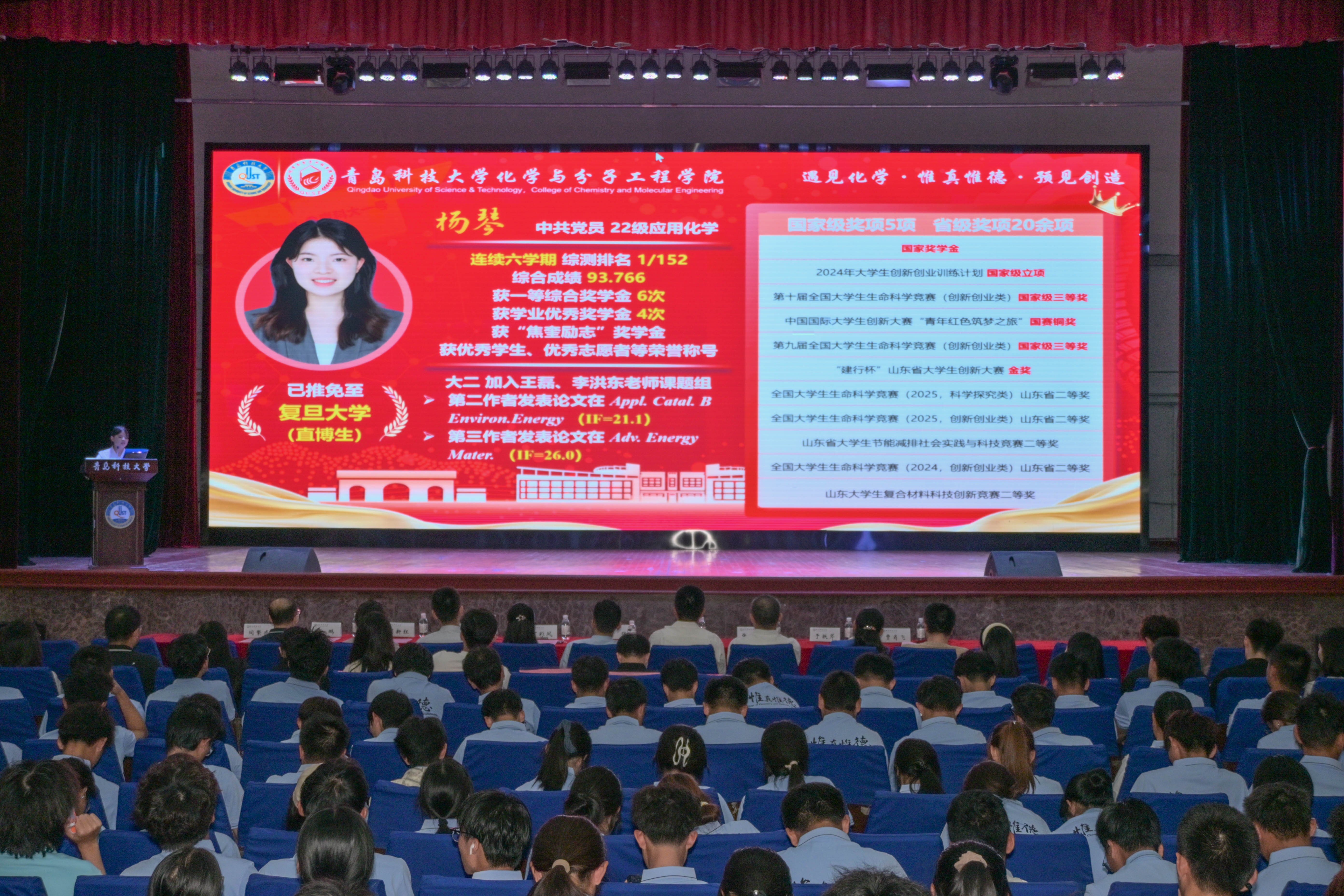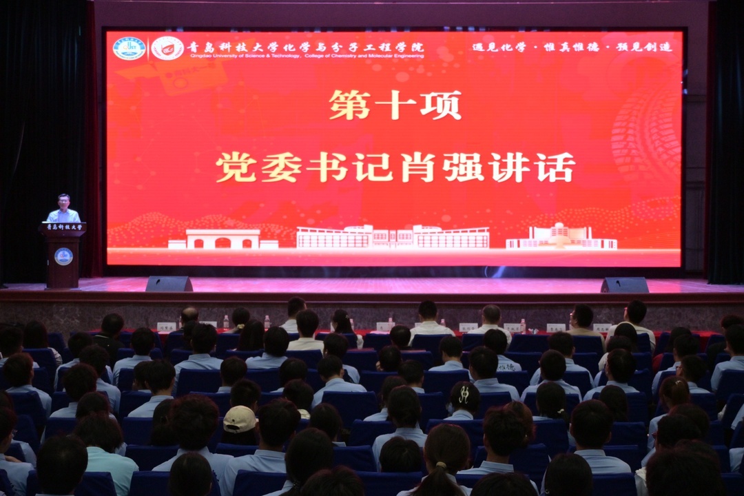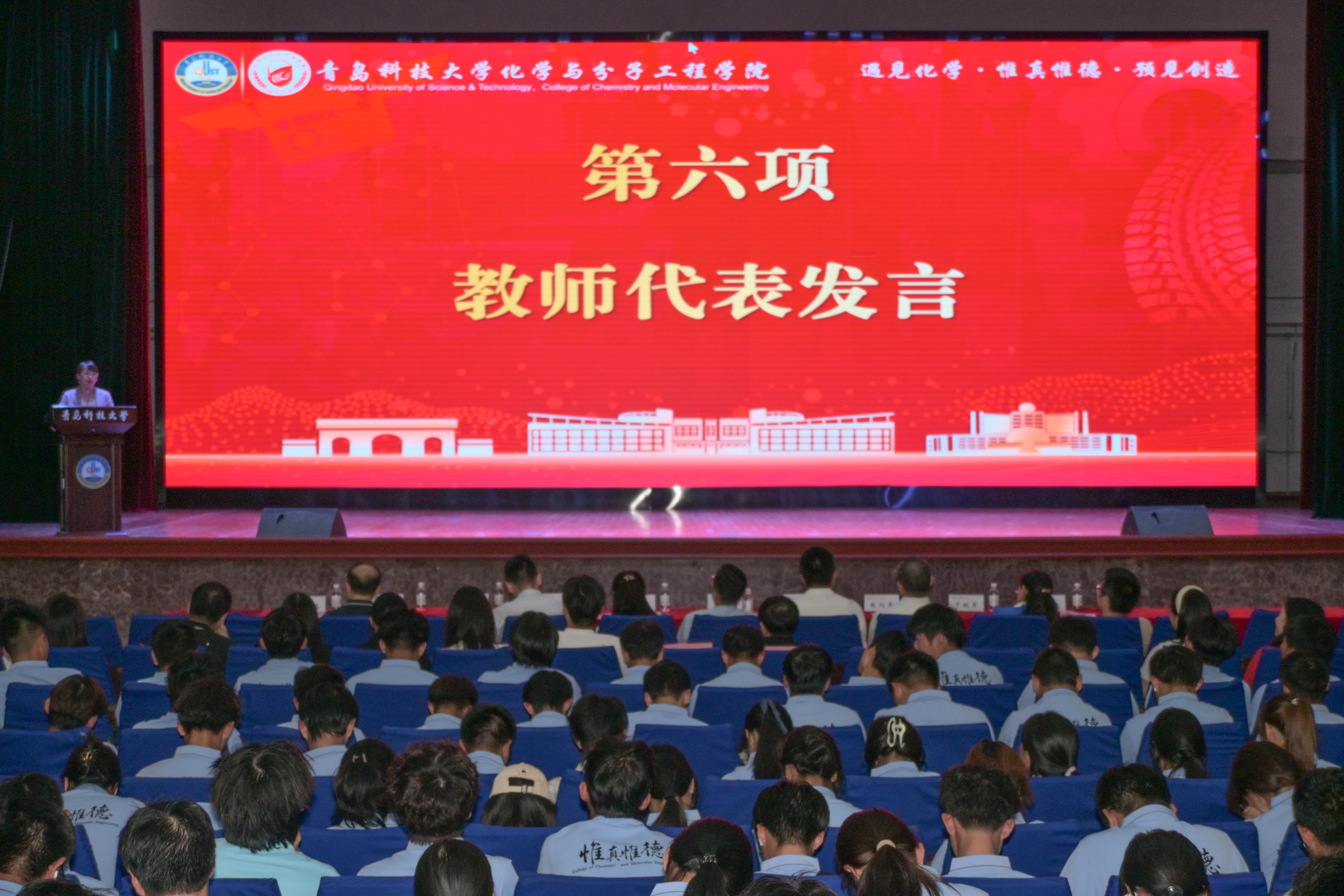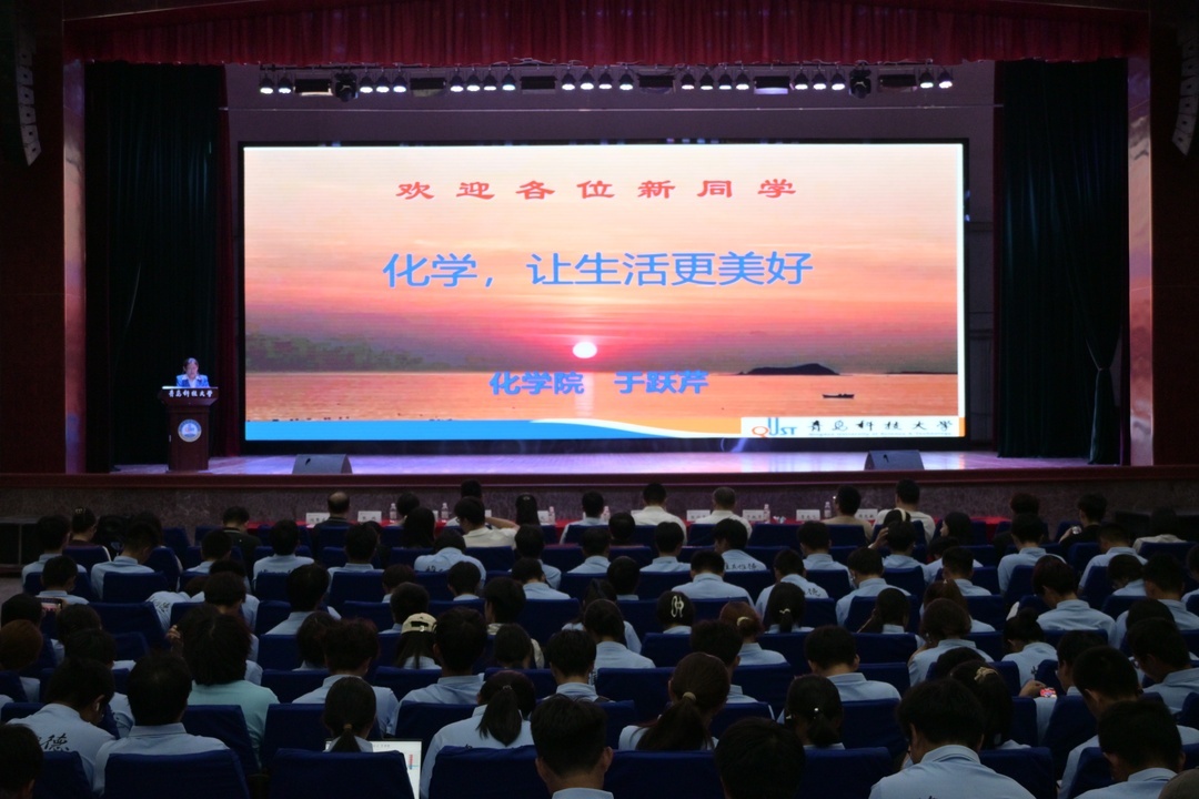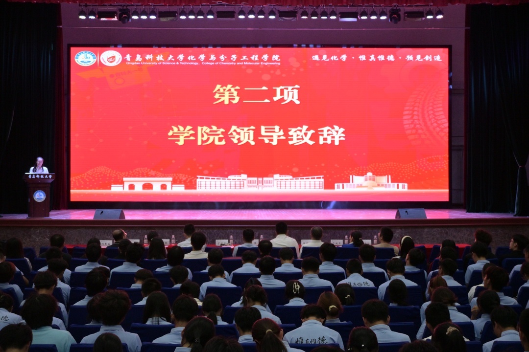 9月25日晚,化学院2025级新生开学典礼暨“开学第一课”在四方校区西礼堂举行。学院党委书记肖强、光电传感与生命分析教育部重点实验室主任丁彩凤、学院党委副书记兼副院长刘尧、学院副院长郭维斯、学院副处级组织员张同雷、青岛市教学名师于跃芹、2025届我最喜爱的老师周新红、专业教研室老师、新生班主任、全体辅导员及2025级全体新生参加典礼。典礼由学院团委书记兼学工办主任闵繁盛主持。