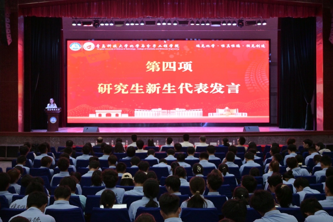 2025级本科新生代表梅宇轩、2025级研究生新生代表辛雨瑶、在校生代表杨琴分别上台分享感悟。她们表示,作为化学院大家庭的成员,将怀揣梦想,脚踏实地,与同学们携手共进,为学院的发展贡献青春力量。