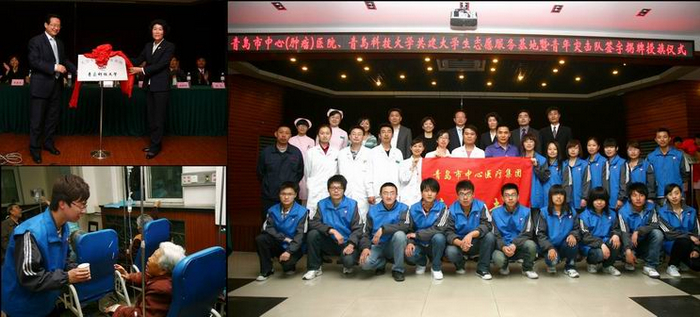 仪式上,青岛市中心医院党委副书记宋岩致欢迎辞;罗公利与宋岩共同为青年突击队授旗,并为大学生志愿服务基地揭牌;刘传华与滕伟签署共建协议;中心医院青年突击队代表与青科大志愿者代表作了发言。