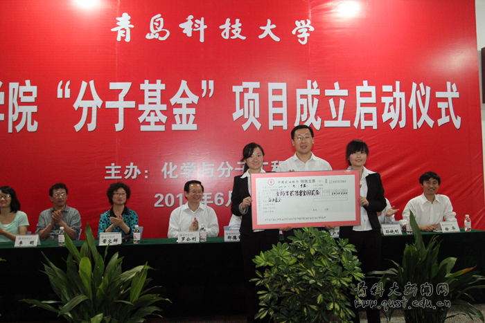 罗公利、郑德前、晋文辉、李明共同启动了“分子基金”项目。教育发展基金会理事郑德前为“分子基金”首批捐赠者颁发了捐赠证书;教育发展基金会秘书长聂广明接受了化学院2012届“分子基金”项目捐款,共计人民币10201.2元。