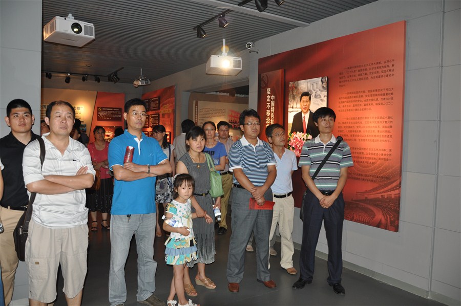 参观中, 教工党员们认真聆听讲解,详细观看了每一件展品和照片,整个过程严肃而又热烈。通过音像视频、电子地图、大型环幕投影以及场景复原等多媒体声、光、电高科技展示手段,让老师们如同身临其境;通过《光辉的历程——中共青岛历史展》,老师们从生动丰富的图片中重温了党的光辉历程,了解了中国共产党人在青岛的活动史;通过正在展出的是《中国共产党历次代表大会——从一大到十八大》主题图片展,老师们全面了解了中国共产党在改革开放以来经济、政治、文化等各方面所取得的伟大成绩。参观结束后,党总支书记刘庆带领全体党员在纪念馆前的党旗下举行了重温入党誓词活动。