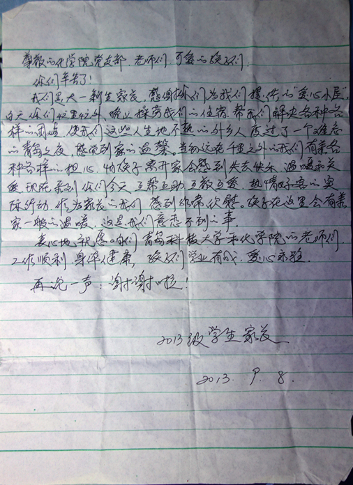 学院“爱心小屋”收到家长感谢信