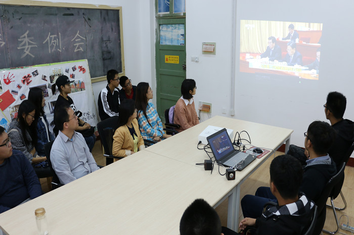 10月21日上午化学院党总支组织学院党政领导、教工和学生党员共同学习观看“纪念红军长征胜利80周年大会”。