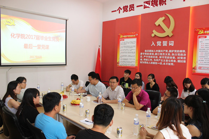 上好最后一堂党课。学院在“五星党苑”党建活动室开展“毕业生党员最后一堂党课”主题教育活动。党总支书记王德宝给毕业生党员上离校前最后一次党课并寄语毕业生党员:“一个党员就是一面旗帜,祝福你们前程似锦,要常怀感恩之心,感恩父母、感恩老师,勇于担当一名当代优秀共产党员的责任和义务”。党总支副书记张壮勉励大家要志存高远,以自己实际行动在各自的岗位上彰显五有科大人的精气神。副院长胡志强希望各位党员,在新的环境中认真践行“两学一做”精髓,将在科大的积淀应用到实际生活中,勇攀高峰。