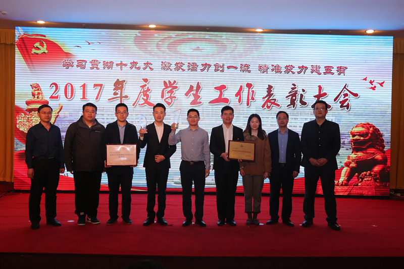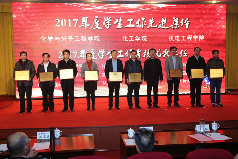 大会上,化学院凭借2017届毕业生就业工作考核和2017年度学生工作考核“双料第一”的优异成绩,荣获“毕业生就业工作先进奖”、“毕业生就业工作单项奖”,被授予“青岛科技大学2017届毕业生就业工作先进单位”、“2017年度学生工作考核优秀单位”和“2017年度学生工作先进集体”荣誉称号。