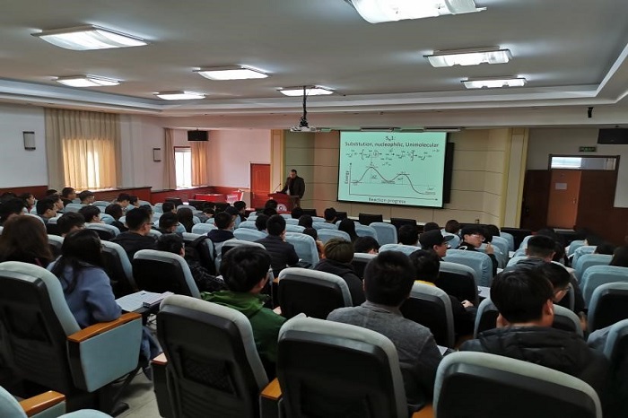 新西兰惠灵顿维多利亚大学Dr. Rob Keyzers博士近日来到青岛科技大学国产内射老熟女AAAA∵,为应化中美班、应化实验班、化学实验班18级学生讲授《有机化学》课程。
