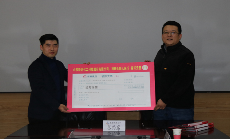 此次微井化工科技有限公司向化学院捐资设立第一期“微井流动化学奖助学金”10万元,用于奖励化学院的优秀学生、困难学生,支持化学院的学生培养工作;同时,向学校捐赠价值120万元的试验设备,用于“微井流动化学联合实验室”的前期建设;并就人才培养、产学研结合、科研平台搭建等方面达成多项共识,开展多方位合作。