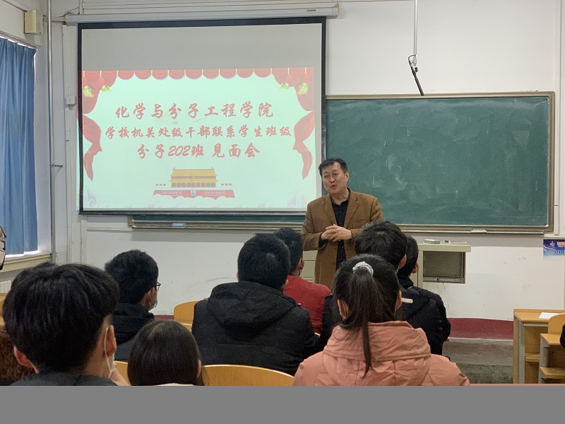 立足本职,筑牢抗疫防线。化学院各年级辅导员分批次召开年级大会,部署校内疫情防控工作和假期返程疫情防控安排,确保学生安全。各班召开疫情防控主题班会,校保卫处处长王佐林参加分子202班主题班会,深入了解同学们在疫情防控常态化背景下学习、生活各方面情况,讲解学校相关疫情防控政策,解答学生疑问,让同学们暖心、安心、放心。