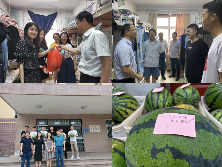 为进一步做好毕业生教育、管理和服务工作,6月25日下午,化学院党委书记王德宝、院长罗细亮、光电传感与生命分析教育部重点实验室主任丁彩凤、副院长胡志强、专职组织员张同雷、院党委副书记兼副院长杨小明及学院全体辅导员来到毕业生宿舍,走访看望2021届毕业生同学与毕业生亲切交流,并为毕业生送去西瓜等慰问品。