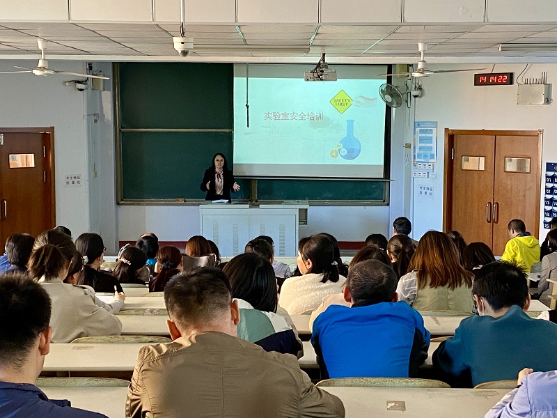 丁彩凤就实验室安全开展主题培训,培训内容包含实验室常见安全隐患、化学实验操作规章、设备仪器的使用安全以及安全事故应急预案等多个方面,要求老师们加强对实验室管理,细化排查,层层部署,及时发现风险隐患并做好化解,扎实做好各项工作。