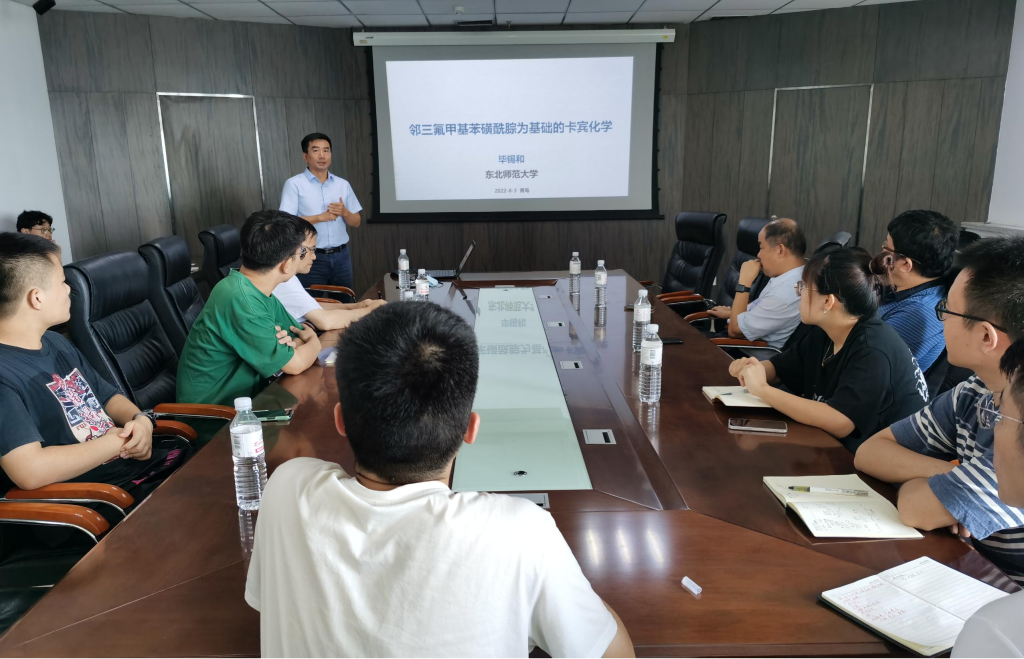 2022年8月3日上午,东北师范大学化学学院教授、副院长毕锡和做客青岛科技大学国产内射老熟女AAAA∵,为广大师生作了题为《邻三氟甲基苯磺酰腙为基础的卡宾化学》的学术报告。讲座活动在CCE大楼1505会议室举行,讲座由化学院党委书记王德宝教授主持,学院相关师生出席。