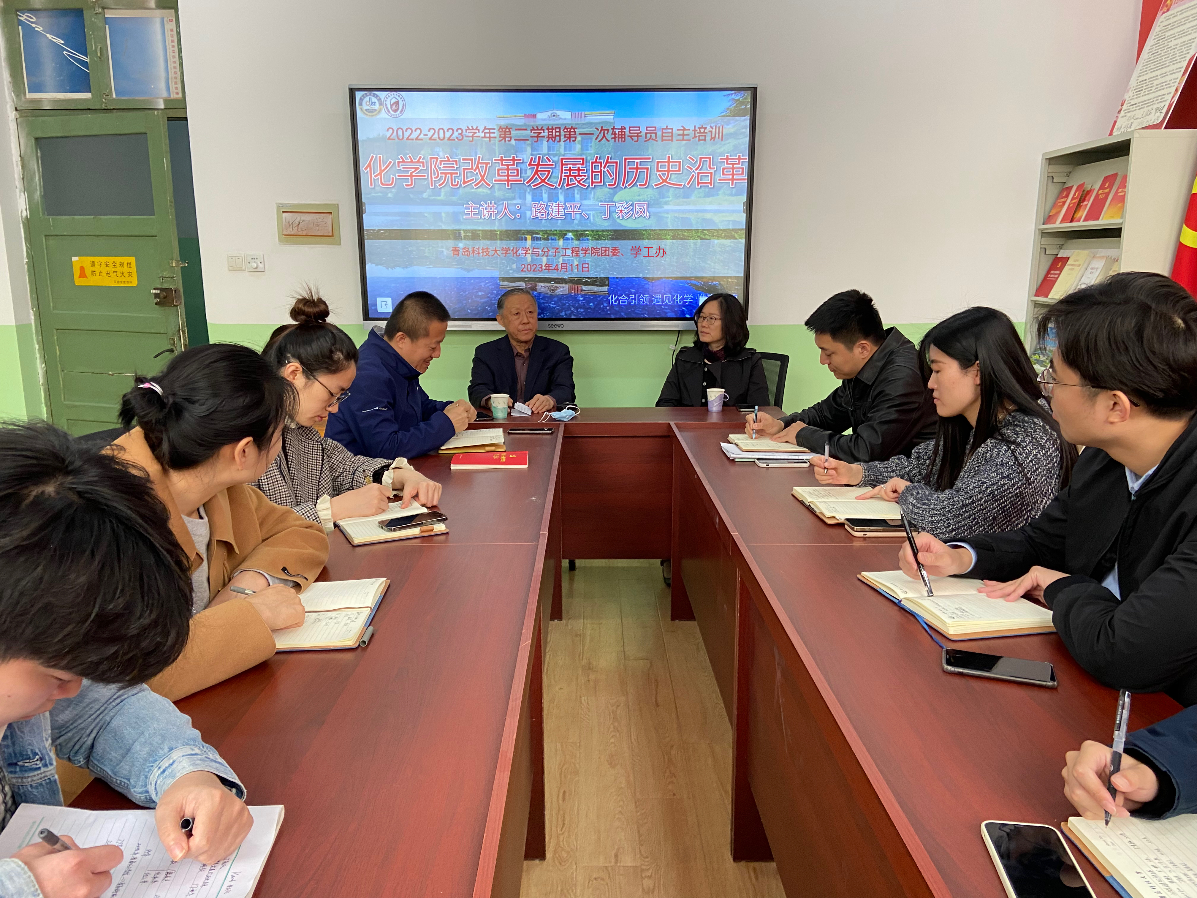 4月11日,化学院2022-2023学年第二学期第一次辅导员自主培训在学院党建活动室举办。原化学院党总支书记路建平、光电传感与生命分析教育部重点实验室执行主任丁彩凤以“化学院改革发展的历史沿革”为题,为化学院全体专兼职辅导员上了一堂生动而有意义的思政大课、人生大课。