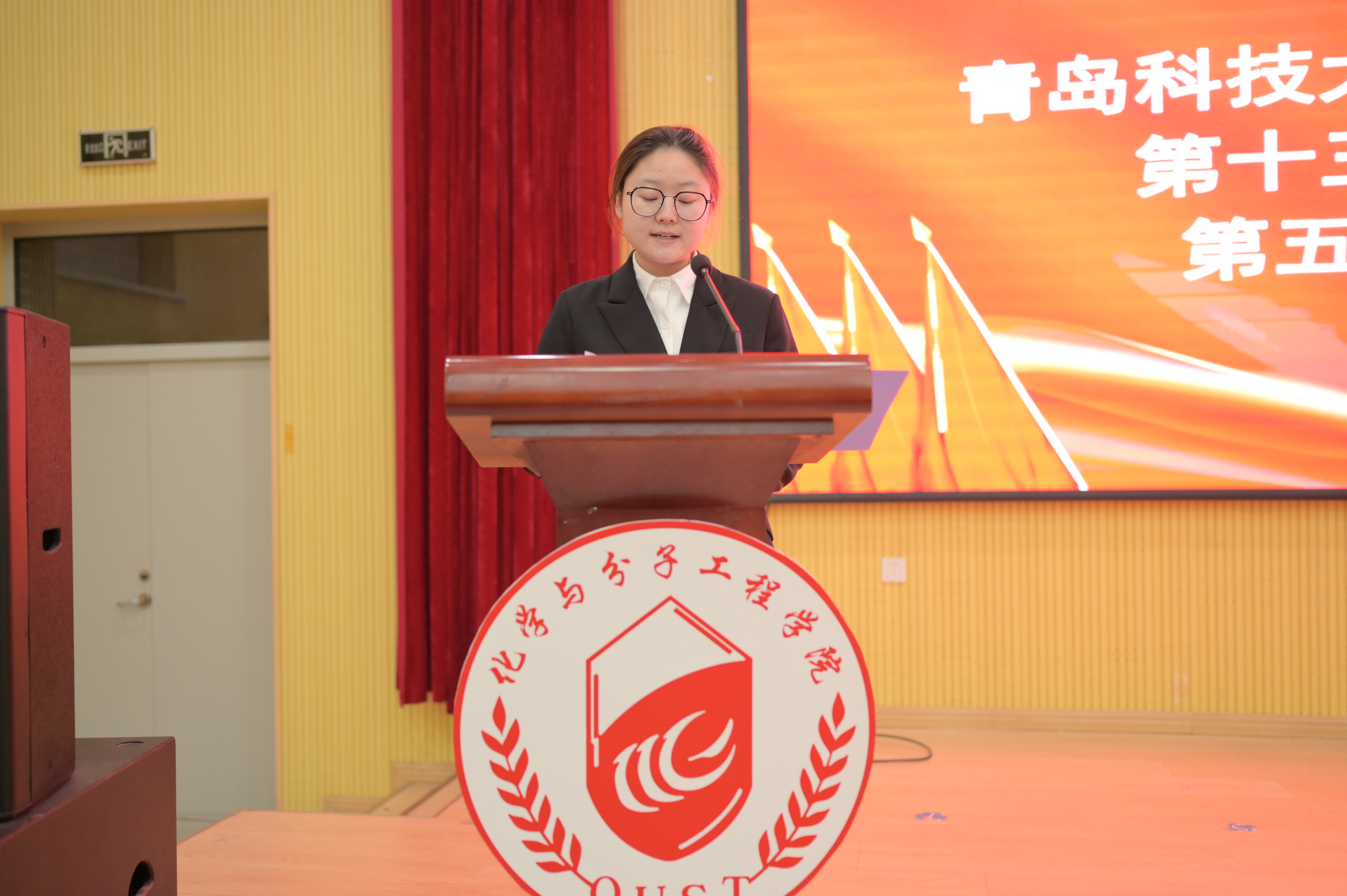 校研究生会主席团代表高源、化工学院学生会主席团代表潘如玉分别代表校研究生会、兄弟学院学生会致辞。