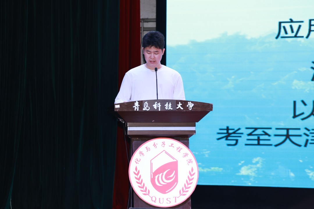 保研学生代表宋福想、考研高分温晗荣、就业代表张学尊分别结合自己的个人经历,分享了在学习实践、竞赛科研、志愿服务等方面的收获感受。研究生代表张家康、许雪娇号召全体学生牢记习近平总书记的嘱托,践行“请党放心,强国有我”的青春誓言。