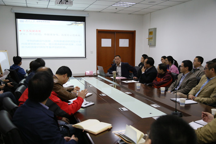 4月10日,湖南大学科技处处长周克刚做客我校生态化工国家重点实验室培育基地、科技处作题为“科技奖励与《推荐书》撰写” 专题报告。科技处处长李志波、副处长谢广文、研究生处副处长王伟文、化学院院长罗细亮、党总支书记王德宝以及肿瘤标志物传感分析教育部重点实验室、化学院、化工学院、高分子学院及海洋科学与生物工程学院相关老师出席报告会,会议由生态化工重点实验室主任李再峰主持。