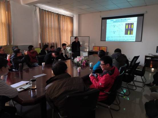 陈超教授详细介绍了课题组近年来在高价碘促进的杂环化合物的合成领域的研究成果。报告中,陈超老师详细介绍了课题组近年来利用高价碘试剂诱导环化反应,由此发展了多组分一锅法构建喹啉、吡唑等杂环化合物的策略。同时基于所构建的荧光小分子,还拓展了其在有机发光材料方面的应用。陈老师报告内容丰富,讲解深入浅出,激起了在座老师和同学的浓厚兴趣,报告在热烈的掌声中落下帷幕。报告结束后,陈超副教授和现场的老师、同学们进行了多方面的交流与讨论。