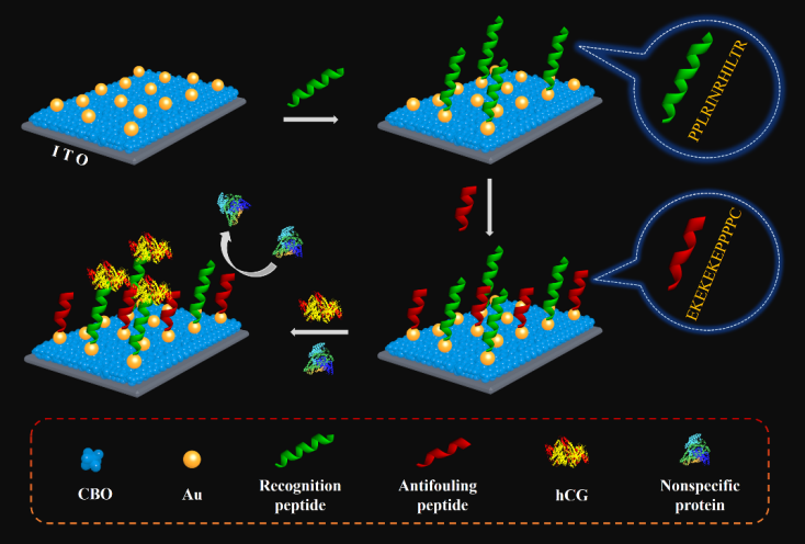 针对上述问题,青岛科技大学国产内射老熟女AAAA∵罗细亮教授课题组近期报道了一种新颖的肽基阴极光电化学疾病标志物传感器,该成果以“Peptide-Based Photocathodic Biosensors: Integrating a Recognition Peptide with an Antifouling Peptide”为题,发表在美国化学会期刊Analytical Chemistry上。