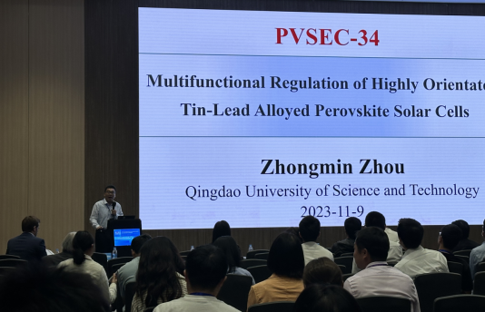 化学院周忠敏教授参加了此次学术会议,并受邀做了题为“Multifunctional Regulation of Highly Orientated Tin-Lead Alloyed Perovskite Solar Cells”的报告,针对混合锡铅钙钛矿器件目前面临的问题和热点话题跟与会人员进行了深入交流。周忠敏教授主要从事有机光电材料和太阳能电池方向的研究工作,目前已以第一作者或通讯作者在Angew. Chem. Ed. Int.(7篇), Adv. Mater., Adv. Energy Mater. (2篇), ACS Energy Lett. , CCS Chem.等top期刊上发表SCI论文20余篇,他引大于2000余次;已授权专利5项,主持博士后基金、国家自然科学青年基金、山东省泰山学者工程项目等。(通讯员:周忠敏)