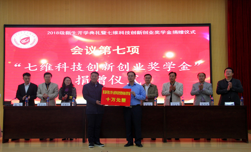 10月16日下午,化学院在四方校区讲学厅举行2018级本科生开学典礼暨“七维科技”创新创业奖学金捐赠仪式。院长罗细亮,党总支书记王德宝,97级校友山东七维新材料有限公司董事长姜凤冕,以及学院党政领导、教师代表、辅导员和全体学生参加了此次活动。