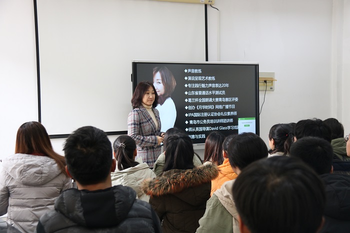 潘老师通过展示数据使同学们明白了在公众面前表达事情的普遍性与重要性,提升了大家的认识水平。随后,潘老师从四个方面分别介绍了演讲的的定义及其作用与什么才能称得上是一个好的演讲。在与同学频繁的互动中,潘老师介绍了演讲的三要素,并且强调了肢体语言、表情及眼神在一个演讲表达中的重要性。