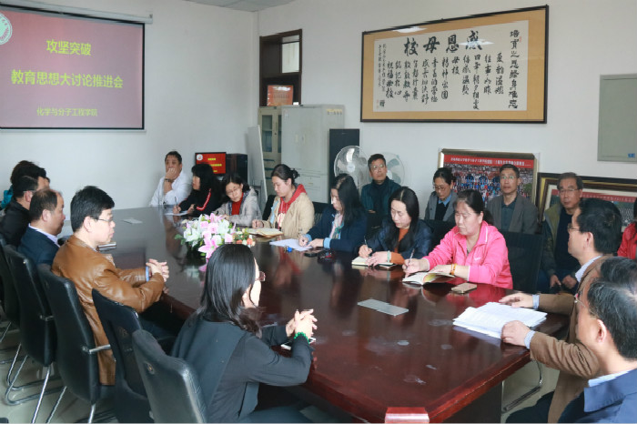 4月18日下午,化学学院党总支在一号实验楼302会议室召开近期安全稳定工作部署会暨教育思想大讨论推进会。会议由院党总支书记王德宝主持。各教研室主任、支部书记参加会议。