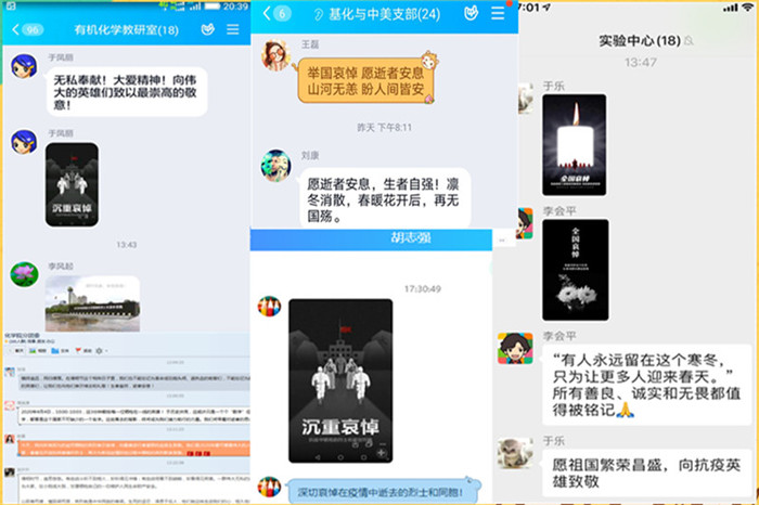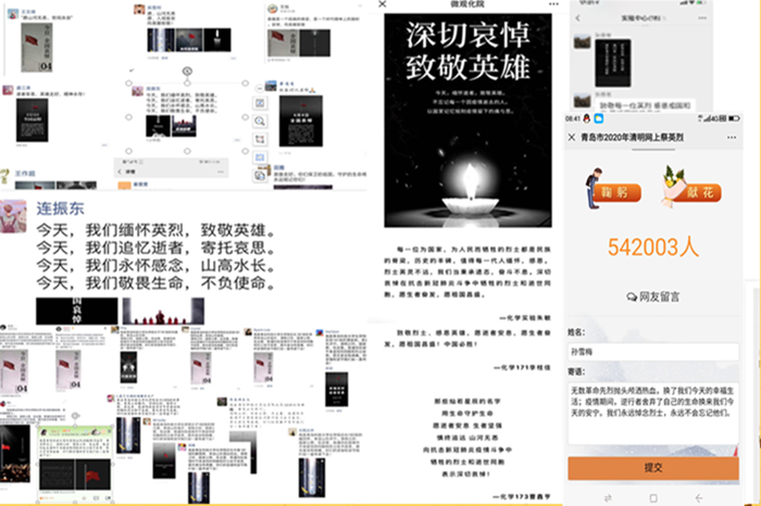 清明之日,国家公祭。为表达对抗击新冠肺炎疫情斗争牺牲烈士和逝世同胞的深切哀悼,积极响应国家公祭号召,化学院师生在学院党总支倡议下开展了清明网上悼念英烈活动。