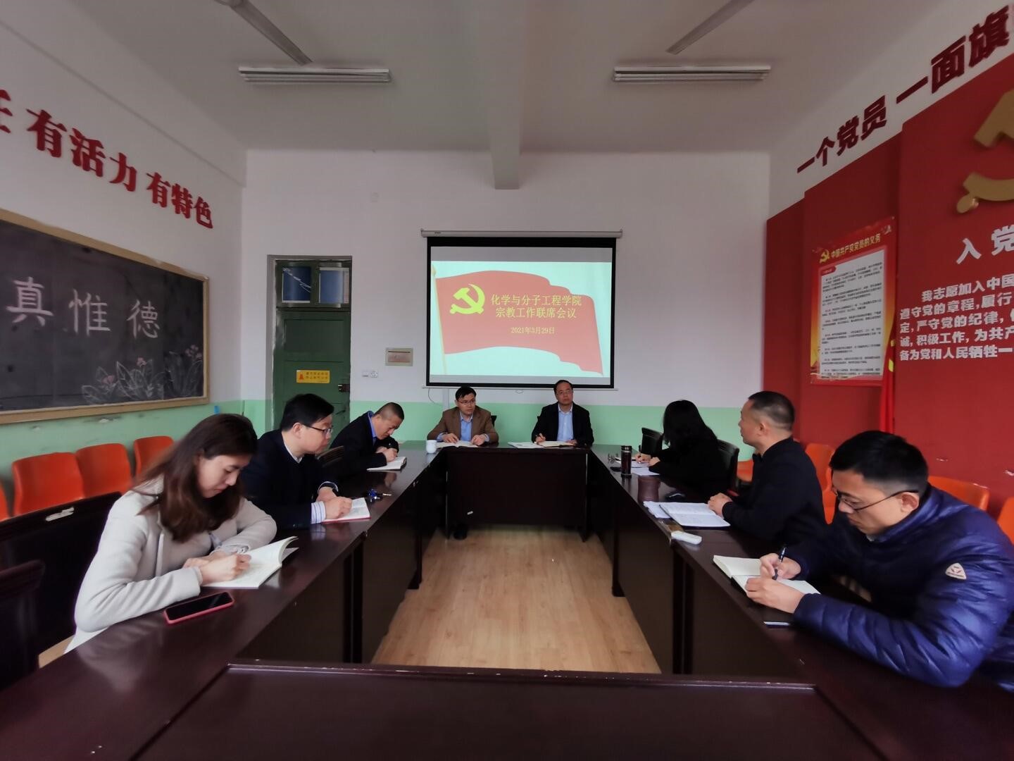 3月29日上午,化学院党委在学院党建活动室223开展意识形态及民族宗教工作专题会议。学院党委成员参加会议,会议由学院党委书记王德宝主持。