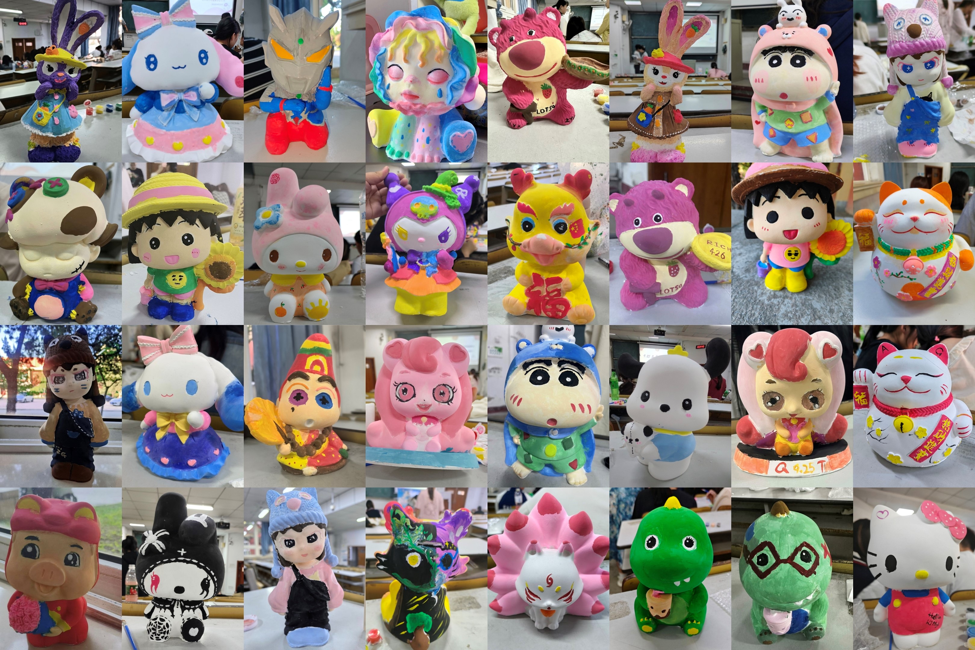 活动中,同学们和自己的好友共同挑选自己本组的石膏娃娃并领取绘画工具进行涂鸦。调色、勾勒、上色……每一步都充满了创意与乐趣。涂鸦时,大家充分发挥想象力和创造力,根据自己的心情及理解进行绘制。在轻松愉快的氛围中,学生们不仅展现了自己的艺术才华,更在合作中加深了彼此的了解与信任。不少学生表示,通过此次活动,他们发现了身边同学的另一面,也感受到了团队合作的力量。