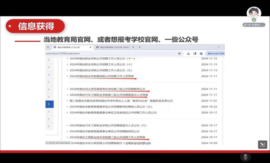 本次活动荣幸邀请到刘杰、杨溪芹、万晨阳、刘颖、丁瑶五位杰出校友参与交流,活动区分“科研院所专场”与“高校就业专场”,针对不同需求研究生提供定向指导建议分享。各位化学院研究生校友分别从个人研究经历出发,深入探讨了就业之路的经验历程,详细阐释了研究生生活与当前工作的差异,并对同学们在职业规划初期所面临的疑惑进行了耐心解答,为同学们更好地应对未来职场挑战提供了实践经验。分享过程中,丁瑶等人深入阐释了在求职过程中如何有效保持良好心态这一关键问题,从高校就业的信息收集、报考、面试技巧,再到入职后的工作心得等全方位,为同学们进行了详细且实用的讲解,为同学们的高校求职之路点亮了明灯。