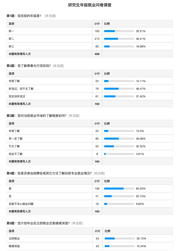 通过此次活动,化学院成功收集到了大量关于研究生就业意向的第一手数据。这些数据将为学院后续制定更加精准的就业指导政策提供有力支撑,有助于进一步提升研究生的就业竞争力和满意度。未来,化学院将继续关注研究生就业动态,为同学们的职业生涯发展保驾护航。(通讯员:程丽)