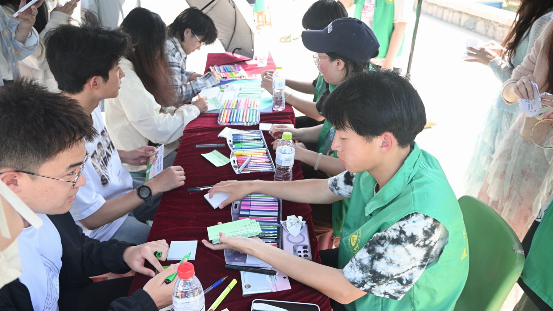 活动现场,化学心理健康协会的师生们凭借专业素养与无限热情,扛起了德育、智育两个板块以及入场引导处和抽奖处的重任,他们以热情周到的服务,确保了活动的有序进行,让每一位参与的同学都能感受到活动的温暖与关怀。工作人员们身着象征生机与活力的化学院绿色志愿服,穿梭于各个活动区域,成为现场一道亮丽的风景线。
