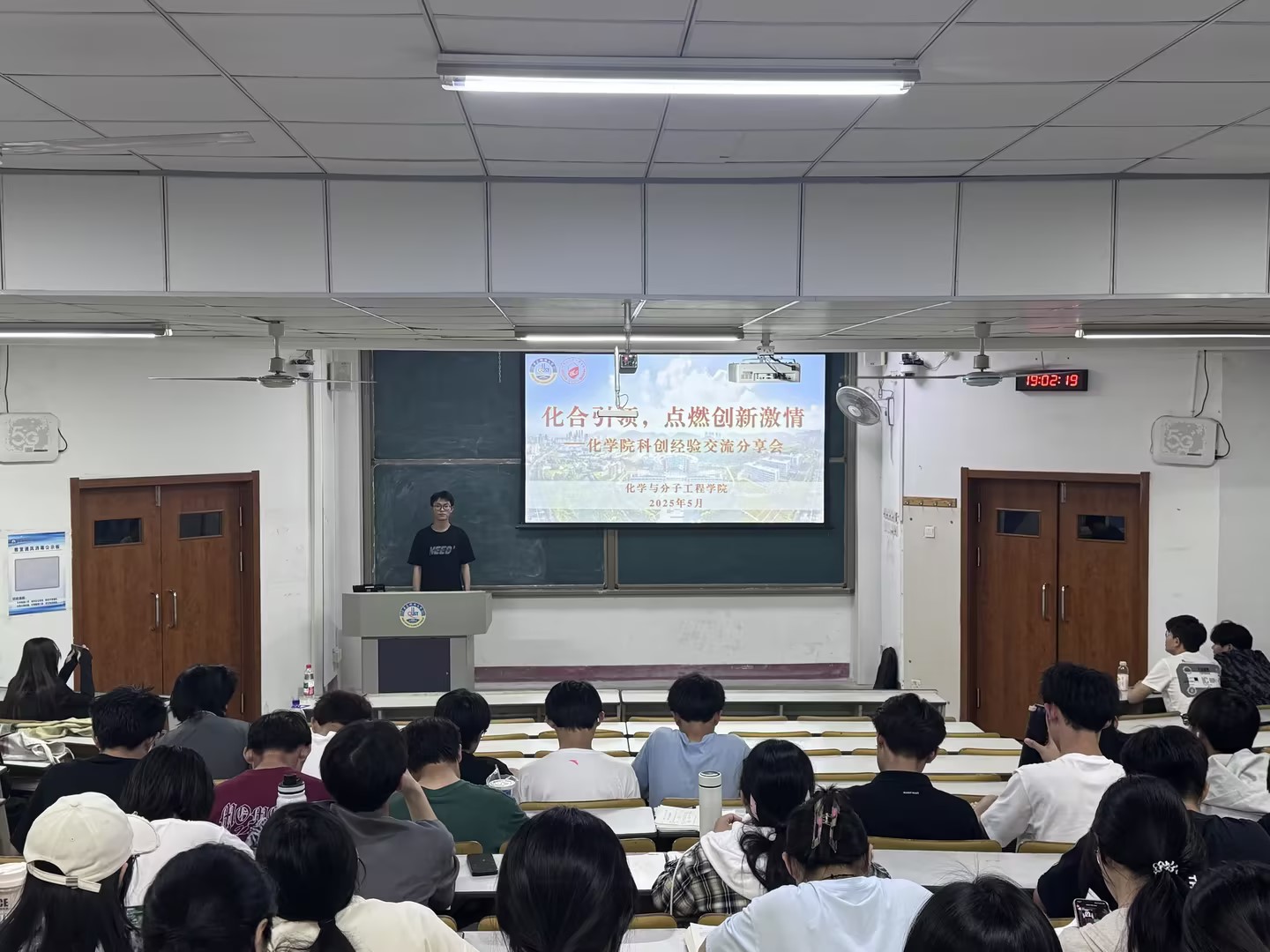 为激发学生科研热情,深化学生对大学科研创新实践的理解,5月24日,化学院举办“化合引领,点燃创新激情”主题科创经验交流分享会。邀请学院优秀学生代表徐振杰同学主讲,24级100余名本科生踊跃参加,分享会由张高鹏主持。