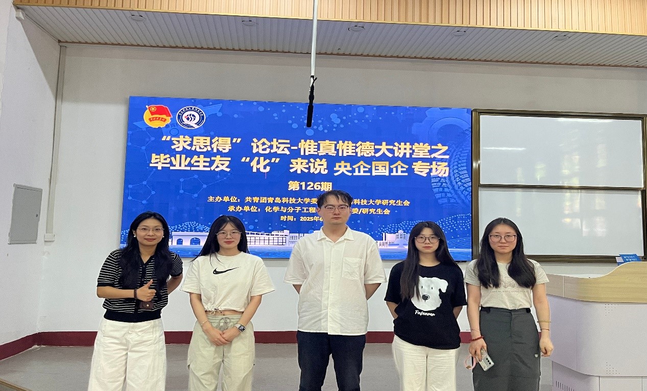 为助力学生明确就业规划,把握就业发展先机,构筑高质量就业竞争力,6月6日下午,化学院研究生会在四方校区第二教学楼101室开展惟真惟德大讲堂之毕业生“友化来说”-国企就业专场分享会,本场报告特邀刘思露、杨晨、孙瑞鸿三位优秀毕业生作为嘉宾。论坛由刘云主持,全体化学院研究生参加此次活动。