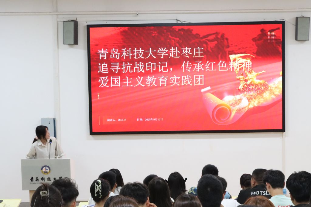 赴枣庄 “追寻抗战印记,传承红色精神”爱国主义教育实践团核心队员潘永琪分享了团队追寻红色故事的过程,通过参观学习铁道游击队纪念馆、台儿庄大战纪念馆等红色基地,以枣庄为精神坐标,串联山东区域抗战记忆,延伸至全国红色脉络,在历史遗址的探访中触摸民族抗争的温度,为纪念抗日战争80周年献礼。