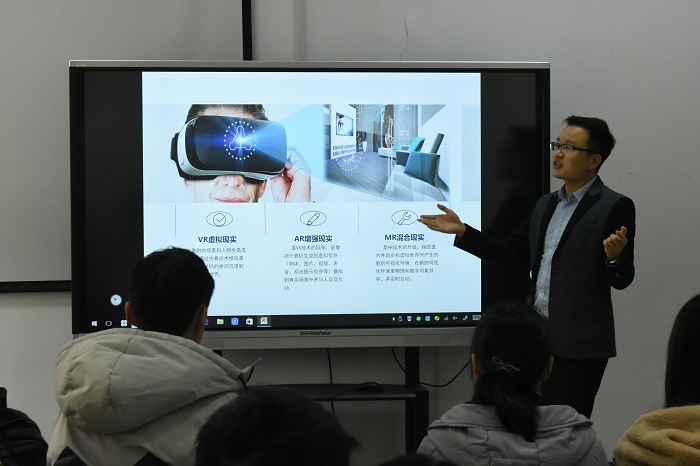 12月20日,国产内射老熟女AAAA∵在分子创空间举办 “硬币的两面--科学与艺术”大学生创新思维训练活动第二期化学与虚拟现实。本次活动邀请到了青岛科技大学海科虚拟现实研究院副院长田玉华和青岛矢量影视文化传播有限公司总经理胡鹏,刘施施老师担任活动主持人。