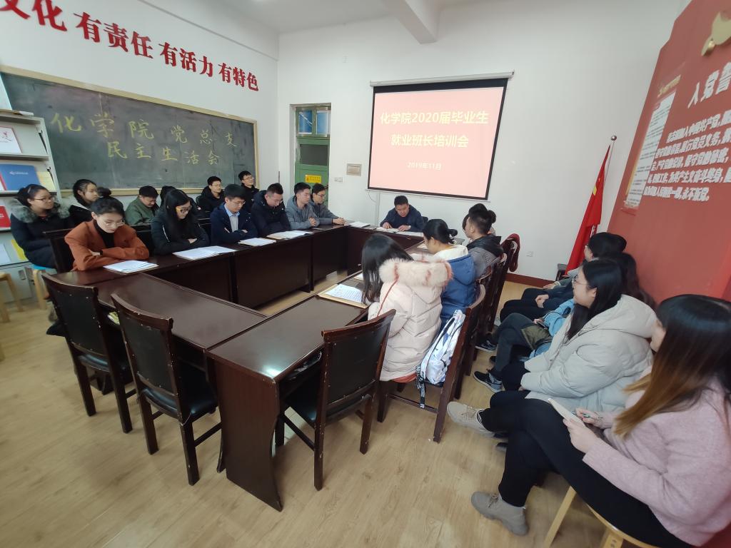 为高质量做好2020届毕业生就业服务工作,11月15日,化学院分团委在一号行政楼党建活动室召开2020届毕业生就业班长工作会议。全体化学院2020届毕业生就业班长、就业助理参加了会议。