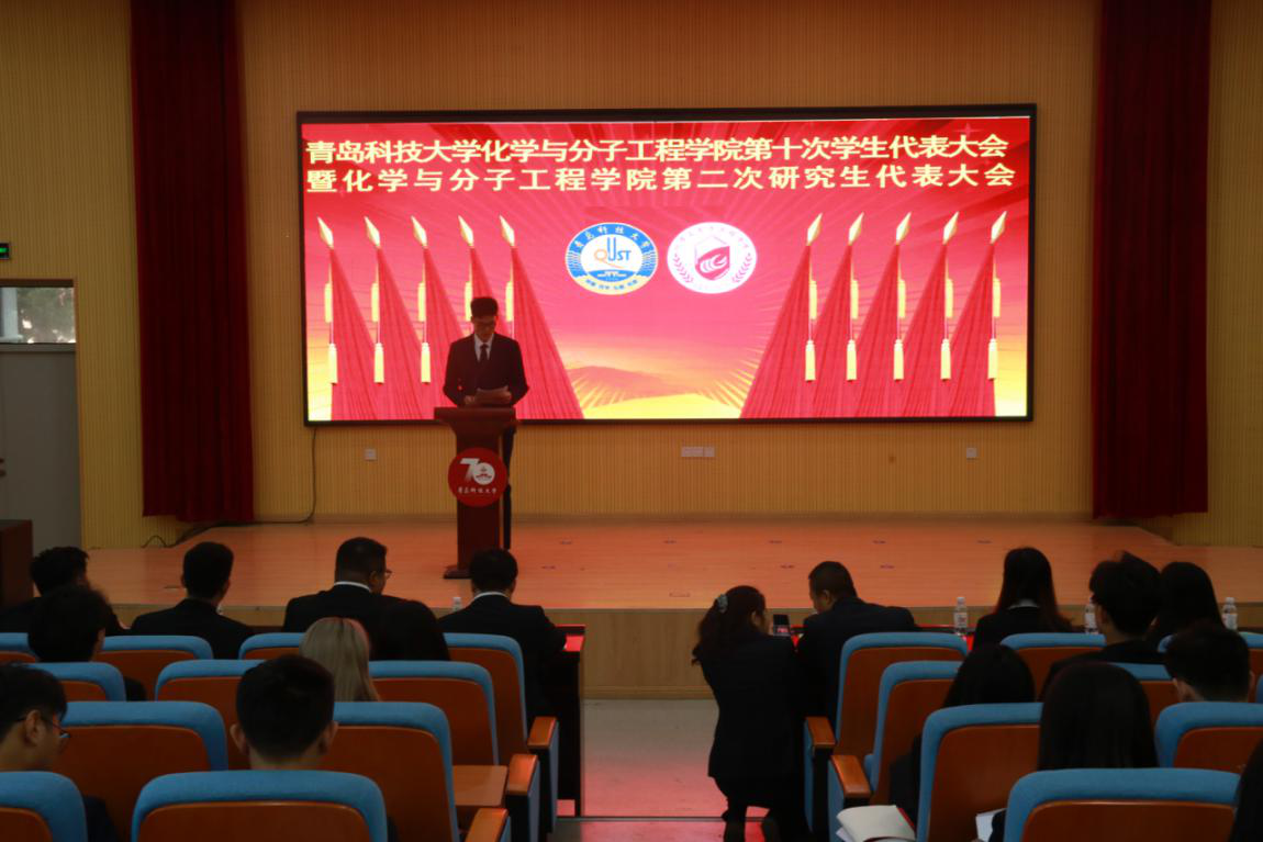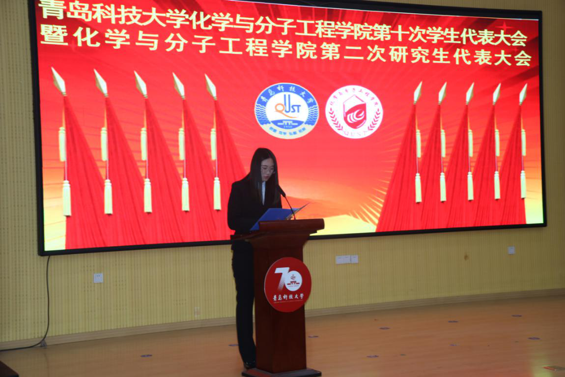 正式会议在雄伟的国歌声中开幕,化学院党委副书记兼副院长杨小明老师代表学院领导班子致开幕辞。杨老师的致辞情真意切,表达了对化院学子的殷切厚望。随后,由青科大四方校区学生会代表娄亚庆同学宣读贺信,兄弟学院代表——环境学院学生会主席林忠禹同学致辞。会议审议并通过了马帅同学代表青科大化学院第九届学生会及路燕同学代表化学院第一届研究生会做的工作报告,报告全面、客观地回顾了一年来我院学生会及研究生会的工作,提出了今后工作目标和主要任务。
