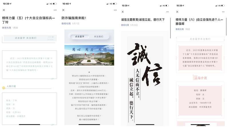 化学院紧密围绕立德树人目标,将诚信教育主题工作与学生德育、心理健康教育结合起来,促进学生健康成长,构建多元一体的诚信教育体系,5月至6月开展系列活动加强诚信教育。