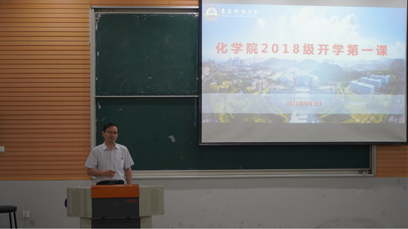 为引导我院18级学生更好地了解就业形势,认清升学趋势,树立正确的择业就业观,提升就业质量,进而以更加饱满的精神状态投入到新学期生活中,9月3日,化学院2018级“开学第一课”暨惟真惟德大讲堂在第二教学楼101教室召开。化学院党委书记王德宝、副院长胡志强、党委副书记杨小明、辅导员闵繁盛、王森出席本次活动。