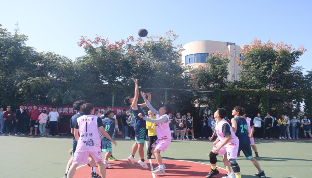比赛首次出战的是应化对战分子。伴随着哨声的响起,由化学院党委副书记兼副院长杨小明老师发出第一球后,现场的气氛极具攀升,高高抛起的篮球点燃了本次篮球赛的活力,双方队员迅速进入状态,进取投入,全力以赴,最终分子专业的队员们凭借高昂的斗志和饱满的活力以两分的优势险胜应化一对。第一场比赛结束后coolsea舞团带来了精彩的啦啦操表演,赢得了阵阵热烈的掌声和呐喊声,充分鼓舞了队员的士气,激发了广大观众的热情。