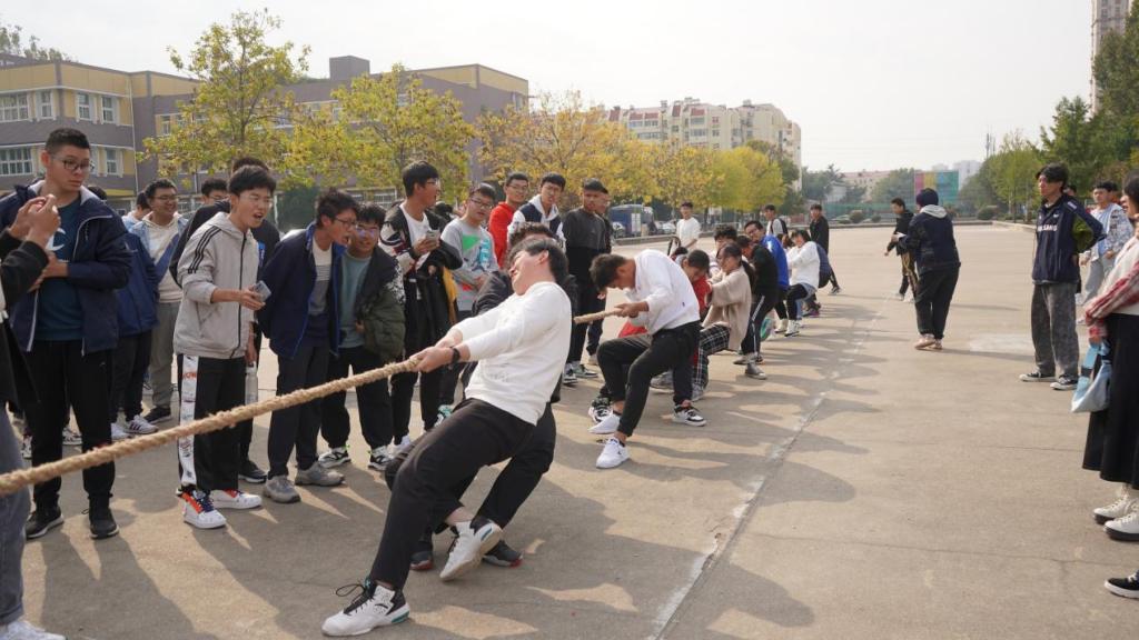 在10月24日一个晴朗的上午,化学院拔河比赛在小五四隆重举行。随着随着裁判的哨声,比赛开始了!双方队员握紧绳子,他们一个个脚蹬着地,身体向后倾,拼命向自己的方向拽绳子。绳中间的红绸不断的左右移动,对赛双方互不相让。双方的同学们,也齐声呐喊,不停地为自己队擂鼓助威。本次拔河比赛丰富了化院学生的业余体育生活,培养学生加强体育锻炼的思想意识,加深同学之间团结和拼搏的精神观念,增强各班的凝聚力和学生自身体质。
