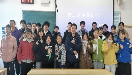 接着老师强调了大学生的心理问题。闵老师和同学们说如果遇到心情不好的时候,一定要向外沟通,及时疏解不愉快的情绪,不要压抑自己,可以适当的运动来宣泄不愉快的情绪。并向大家介绍了学校心理中心的情况以及心理咨询的方式。闵老师还提到了班级团建问题,闵老师表示团建活动可以增进同学之间的友情。班会最后同学们与老师合影。