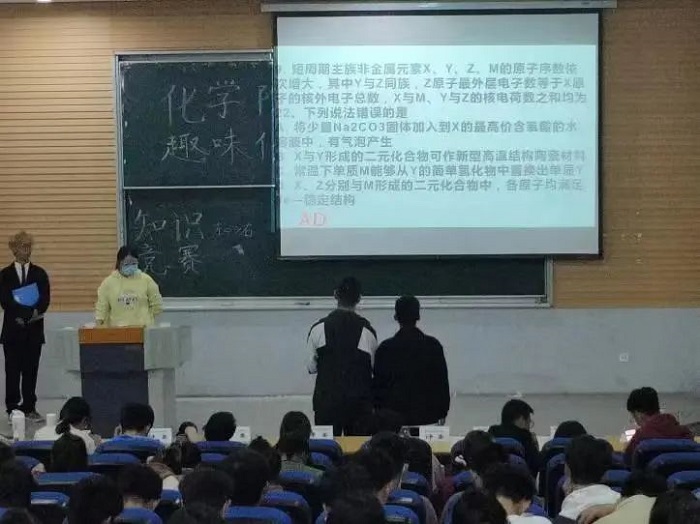 为弘扬学术精神,激发同学们对化学知识的热情,拓展同学们的知识面,开发化学的探索潜力。10月14日,化学院学生会学术部在第二教学楼101教室开展“趣味化学”知识竞赛,大一学生积极参与到此知识竞赛中。