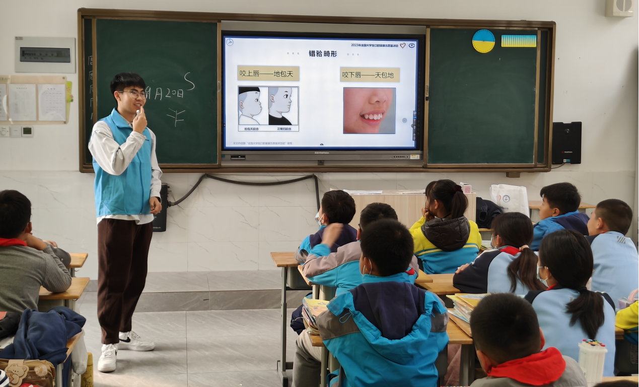 2023年11月22日,2023年全国大学生口腔健康志愿宣讲团——青岛科技大学国产内射老熟女AAAA∵“牙乐乐”志愿服务队于青岛市胶州市胶东小学六年级开展首次宣讲活动。