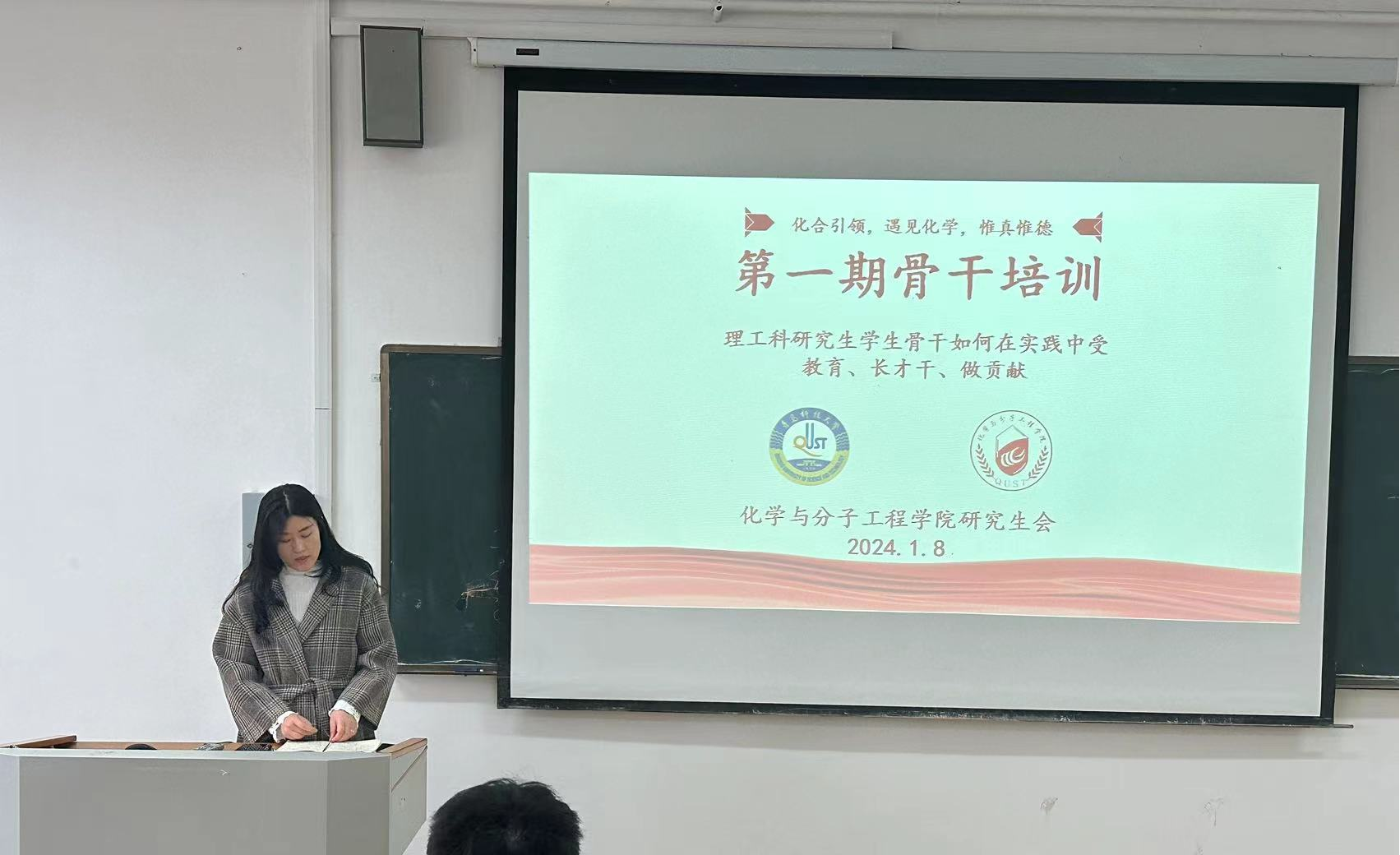 为培养优秀学生骨干并做好下学期工作计划,化学院研究生会于2024年1月8日化学院研究生会在一政243举办2024年度第一期骨干培训活动。化学院研究生辅导员程丽老师、化学院研究生会全体成员出席此次培训活动。